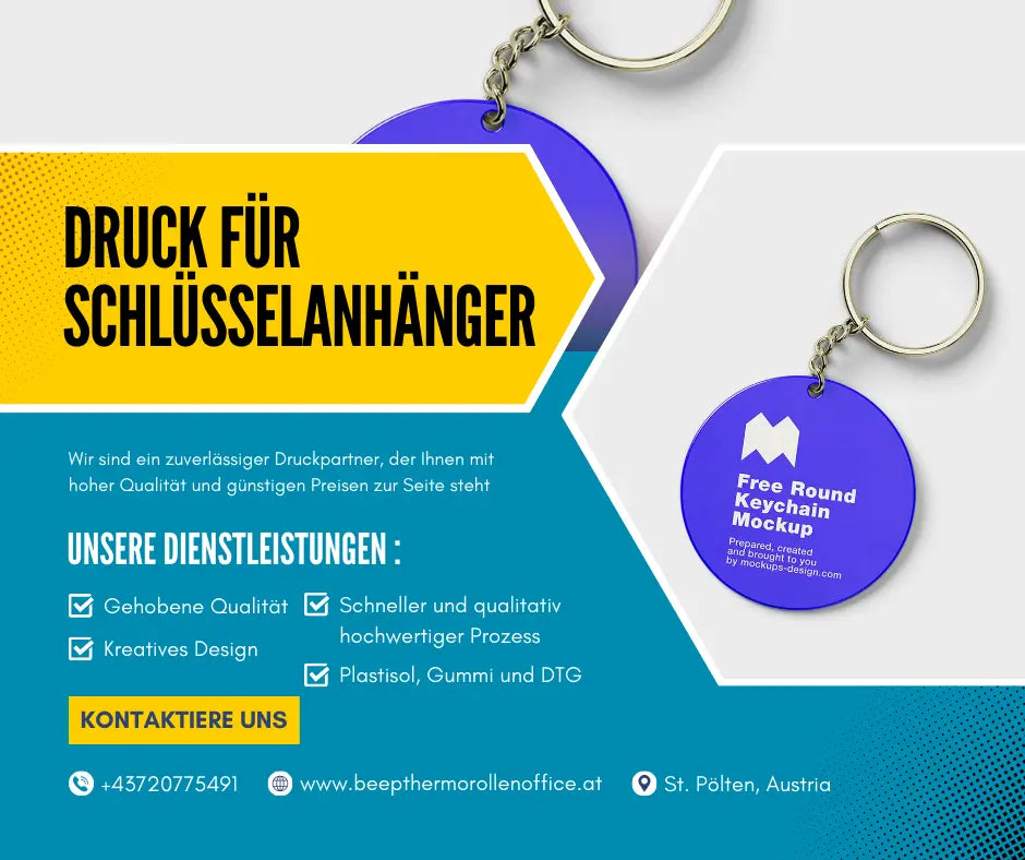 Stärken Sie Ihre Marke mit unseren erstklassigen individuellen Schlüsselanhänger-Druckservices. Wir sind auf personalisierte Schlüsselanhänger spezialisiert, die sich perfekt für Werbeveranstaltungen und Firmenpräsente eignen. Unsere hochwertigen bedruckten Schlüsselanhänger können mit Ihrem Logo oder Design angepasst werden, um ein einzigartiges und professionelles Aussehen zu gewährleisten. Ob Sie einen Großauftrag für eine große Veranstaltung oder einzigartige gebrandete Schlüsselanhänger für Ihr Team benötigen, wir haben die passende Lösung für Sie. Kontaktieren Sie uns noch heute für zuverlässige und kostengünstige Schlüsselanhänger-Druckservices, die auf die Bedürfnisse Ihres Unternehmens zugeschnitten sind.